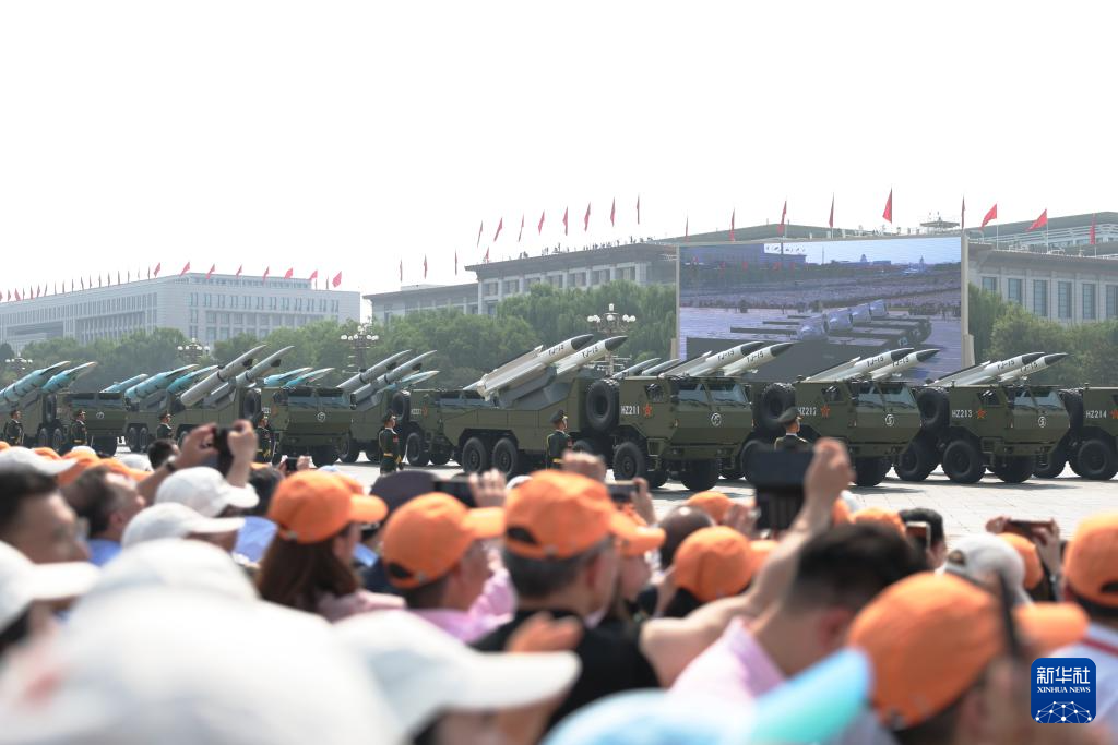 9月3日,紀念中國人民抗日戰爭暨世界反法西斯戰爭勝利80周年大會在北京隆重舉行。這是反艦導彈方隊接受檢閱。