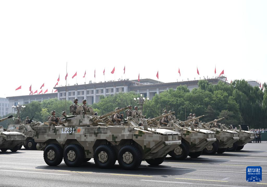 9月3日,紀(jì)念中國人民抗日戰(zhàn)爭暨世界反法西斯戰(zhàn)爭勝利80周年大會在北京隆重舉行。這是裝備方隊接受檢閱。