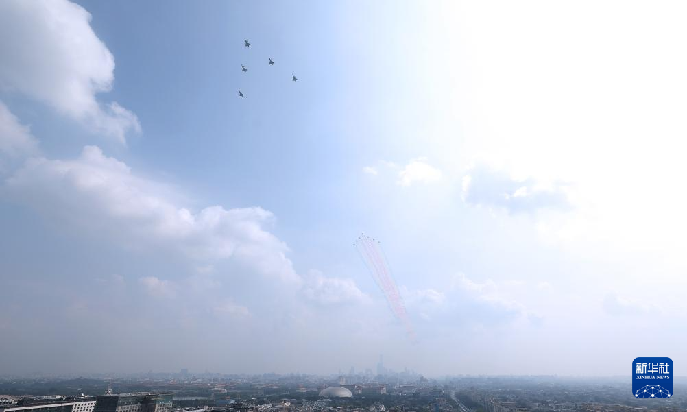 9月3日,紀念中國人民抗日戰爭暨世界反法西斯戰爭勝利80周年大會在北京隆重舉行。這是空中梯隊接受檢閱。