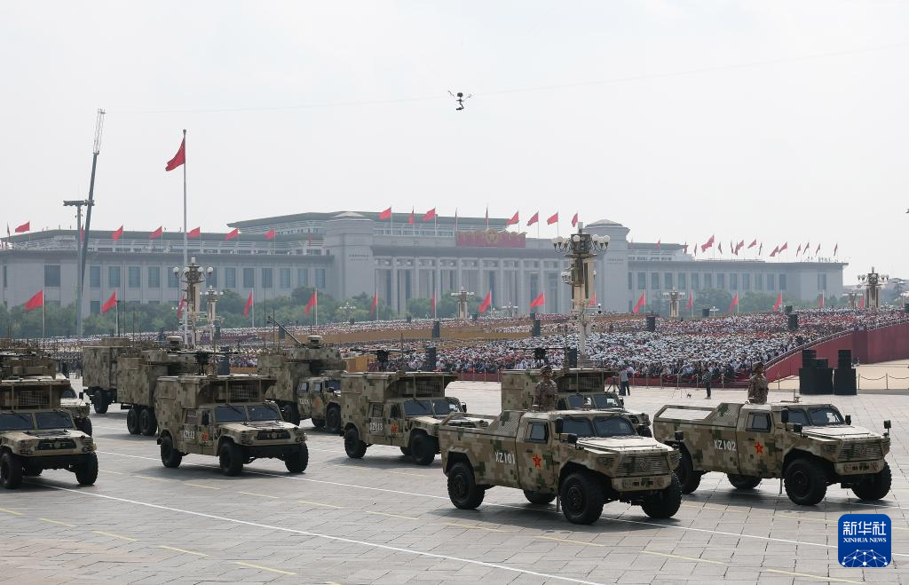 9月3日,紀念中國人民抗日戰爭暨世界反法西斯戰爭勝利80周年大會在北京隆重舉行。這是信息支援方隊通過天安門廣場。