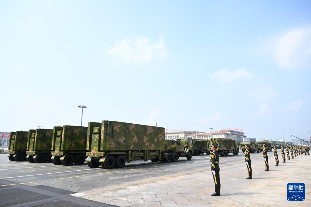 9月3日,紀念中國人民抗日戰爭暨世界反法西斯戰爭勝利80周年大會在北京隆重舉行。這是高超聲速導彈方隊接受檢閱。