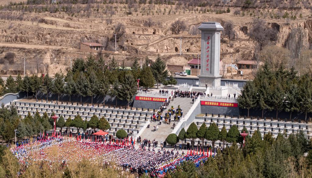 清明節前,寧夏固原二中和弘文中學1600多名師生凌晨5點從學校出發,徒步前往位于彭陽縣的任山河烈士陵園,祭奠長眠在那里的391名烈士,全程往返共108里。