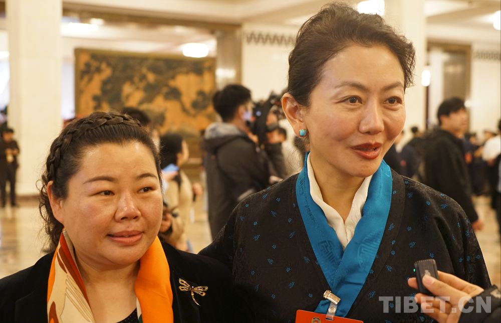 圖為全國政協委員邊巴拉姆(右一)接受記者采訪 攝影:楊眉笑