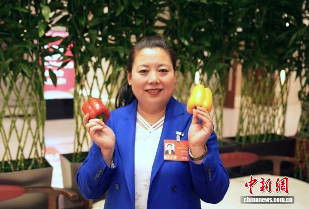 全國人大代表高向秋在兩會現場展示特色農產品。受訪者供圖