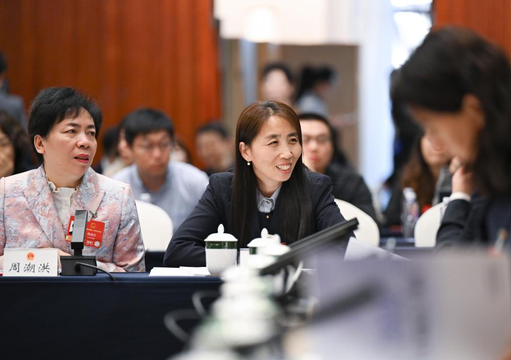 3月6日,金瑞瑞代表在駐地參加分組審議。 新華社記者 金立旺 攝