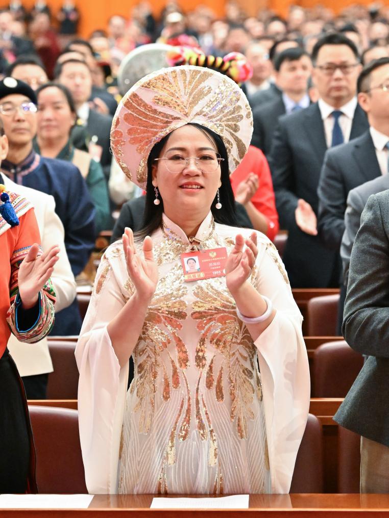 3月4日,蘇海珍委員在全國政協(xié)十四屆四次會議開幕會上。新華社記者 陳益宸 攝