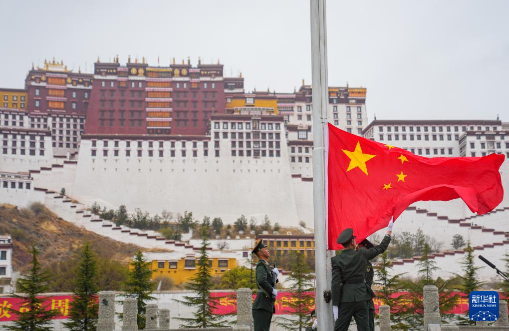 3月28日,布達拉宮廣場舉行升國旗儀式,隆重紀念西藏百萬農(nóng)奴解放67周年。新華社記者 丁增尼達 攝