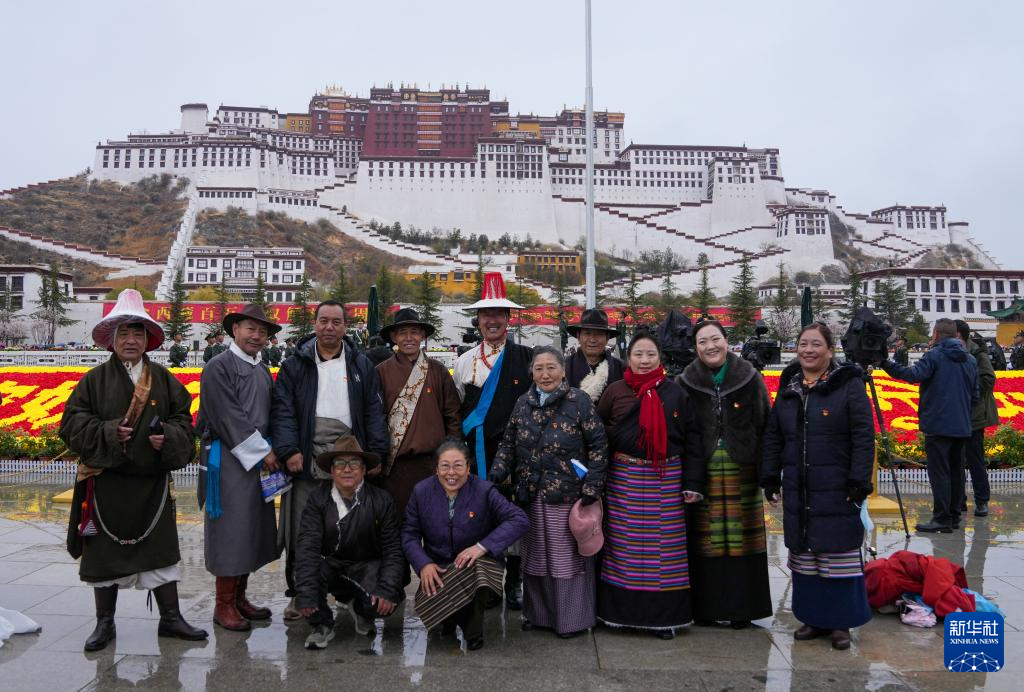 3月28日,群眾代表在布達拉宮廣場合影留念。新華社記者 晉美多吉 攝